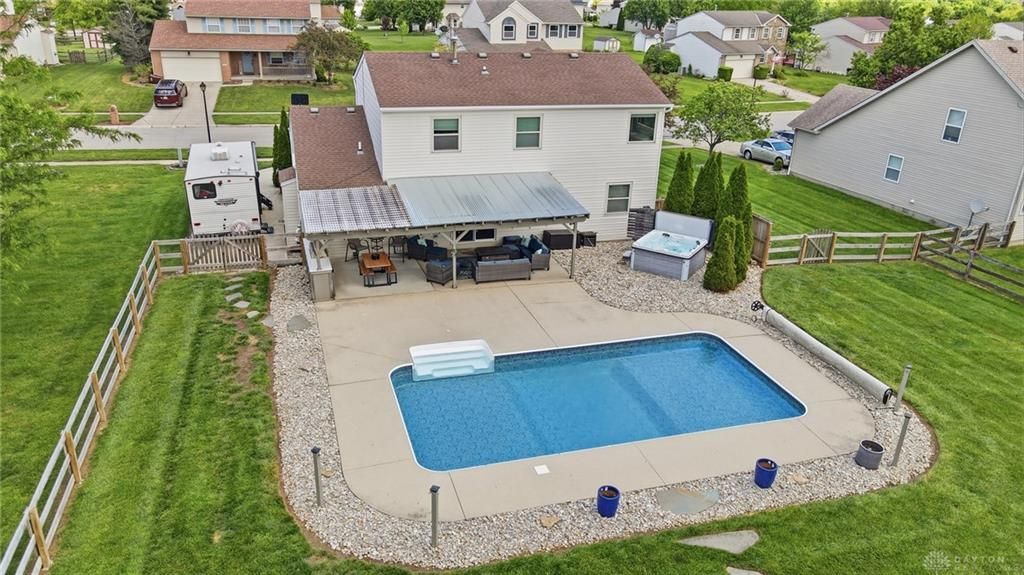 Welcome to 6023 Glennsbury, where thoughtful updates meet everyday comfort. This 4-bdrm, 2.5 bath home features a completely opened & remodeled kitchen, creating an inviting space that seamlessly connects to the heart of the home. By removing the formal dining room, the layout now offers a generous eat-in kitchen designed for both entertaining & daily living. Upstairs, you'll find 4 bedrooms, including an updated primary suite w/remodeled bath. The home continues to impress with a finished lower level providing additional living space perfect for a rec room, office or workout area. Step outside to a backyard that truly sets this home apart complete with a volleyball pool, hot tub, covered patio with built-in grill & storage shed. It's a private retreat designed for relaxing, entertaining, and making the most of every season. An added parking pad provides extra convenience & no HOA! A rare combination of indoor functionality & outdoor lifestyle in a sought-after West Chester location
